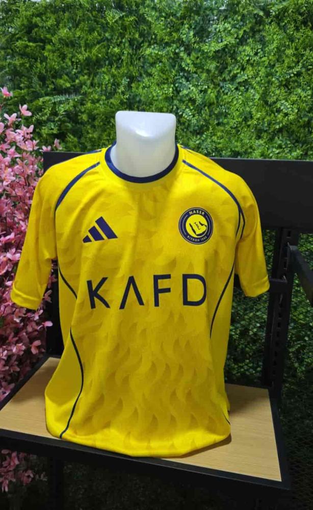 تيشيرت النصر الجديد2026 باللون الأصفر – تصميم عصري بشعار ثلاثي الأبعاد