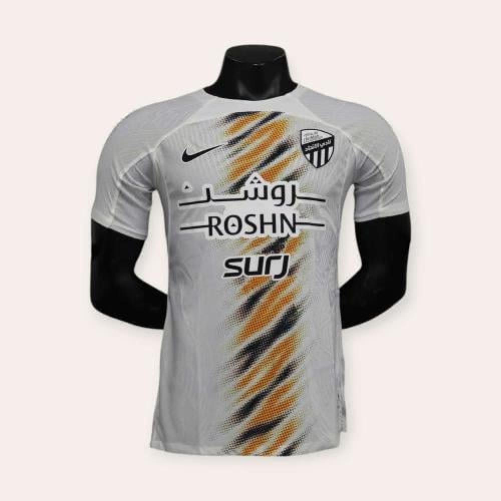 تيشيرت الاتحاد الثالث الجديد بتصميم عصري وأنيق مخصص لعشاق الفريق الذين يبحثون عن الجودة والفخامة في كل تفصيلة تم تصميم التيشيرت بلون أبيض نقي يعكس الهوية الرسمية للنادي.
