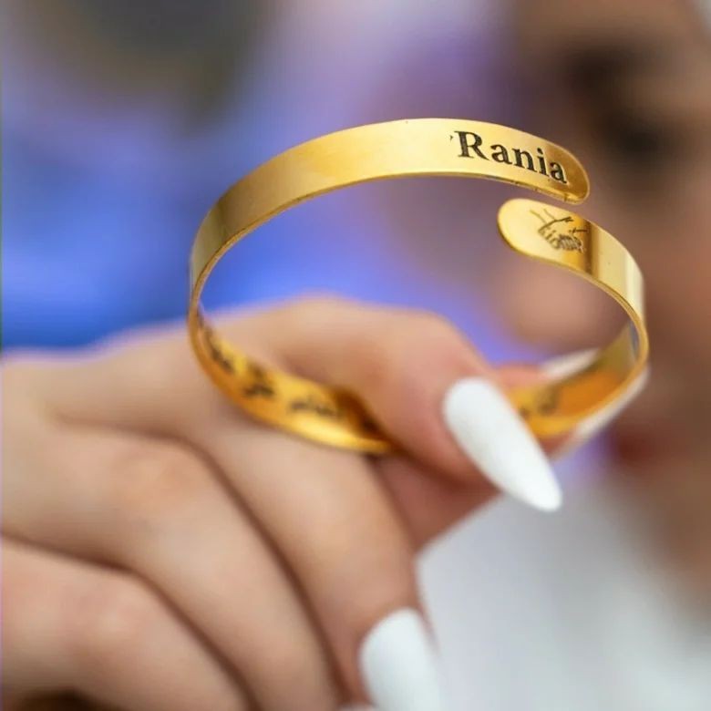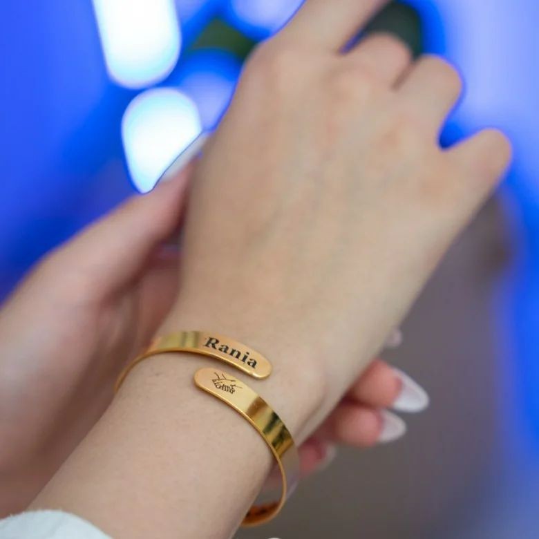 أسوارة مطلية بالذهب تحمل اسمك حسب الطلب، بتصميم أنيق ولمسة فاخرة تعبّر عنك وتخلّد لحظاتك المميزة.