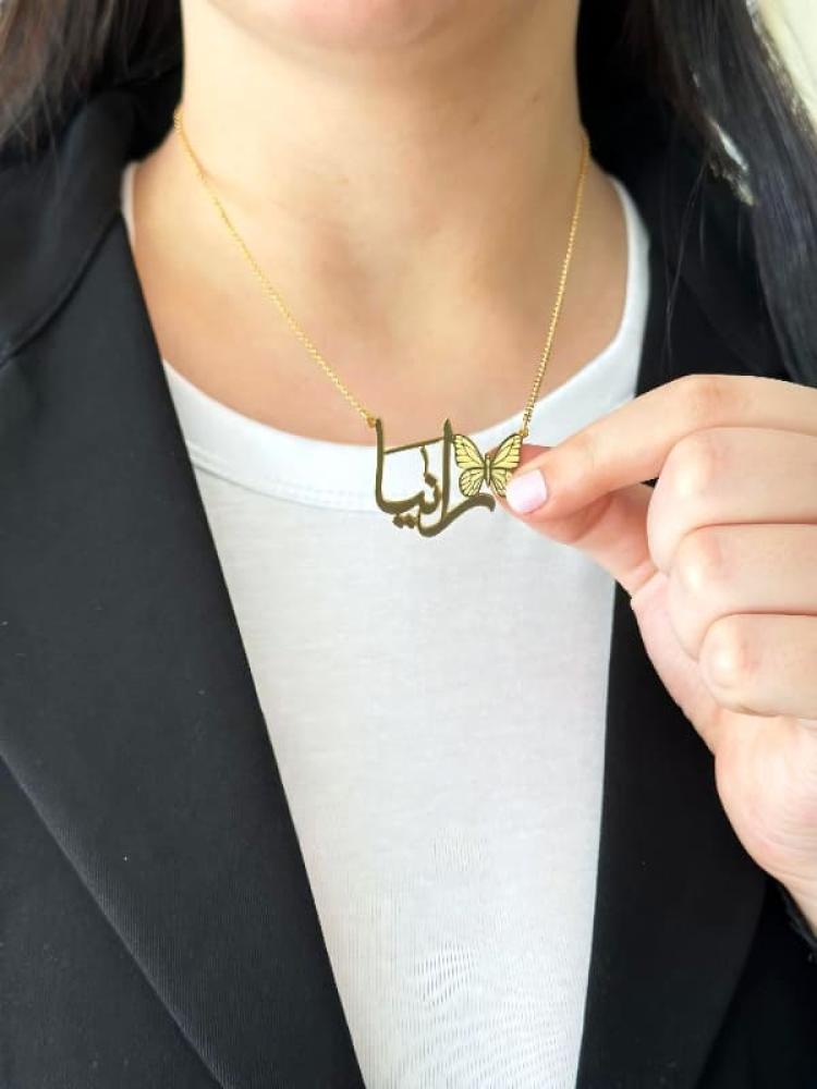 تألقي بأسلوبٍ يجمع بين الأناقة العصرية والجمال الكلاسيكي مع سلسال الفراشة المطلي بالذهب هذه القطعة الفريدة ليست مجرد إكسسوار، بل هي تعبيرٌ عن التميّز والأنوثة، بتصميم يجمع بين رونق الخط العربي وسحر الفراشة.