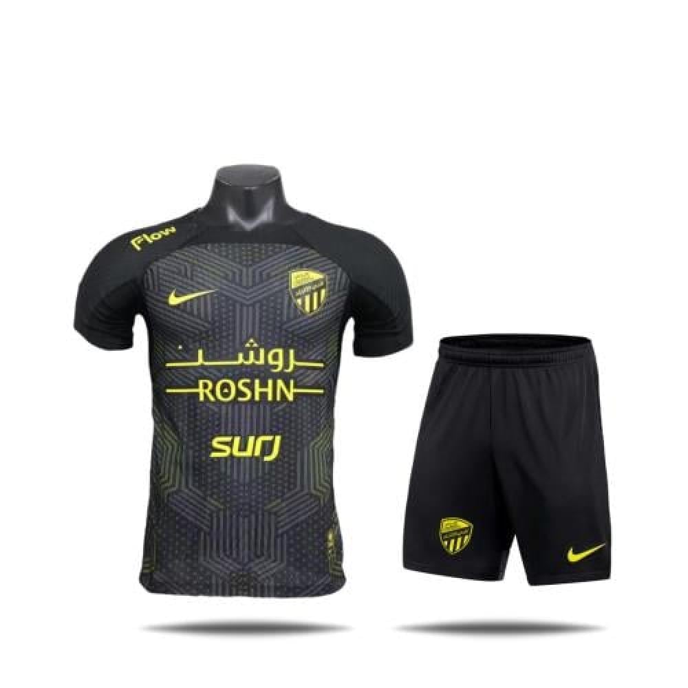 طقم الاتحاد الاسود 2025 جودة فاخرة تعبر عن هويتك اختر طقم الاتحاد الجديد من النرجس باللون الاسود الانيق مصمم خصيصاً لعشاق كرة القدم الذين يبحثون عن الفخامه والتميز.