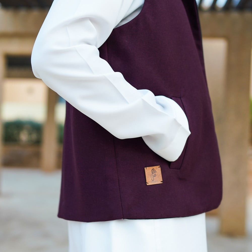 تألق بإطلالة شتوية مميزة مع سديري جوخ عنابي دبل فيس من متجر النرجس.