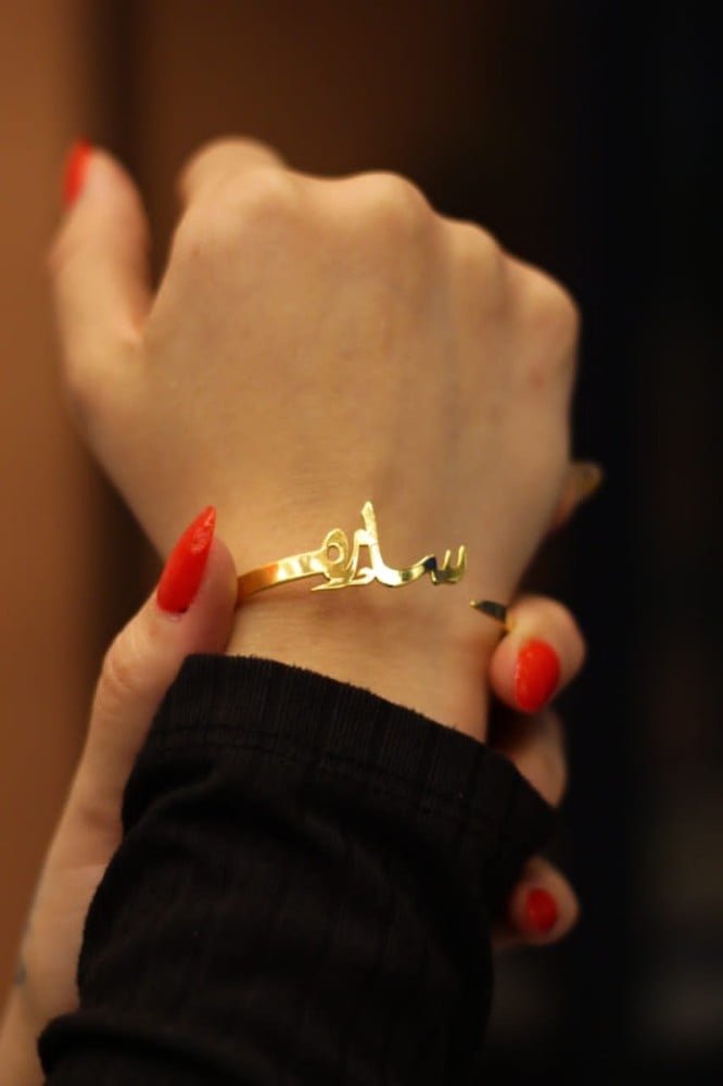أسورة مستوحاه من فنون الخـط العربي بأسمك أو اسم من تحب وممكن تقدمها كهديه مميزة وفريده